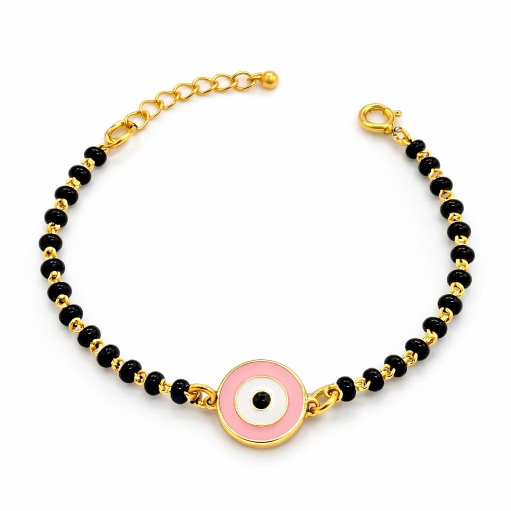 Our 24K gold-plated nazariya with a classic pink evil eye—